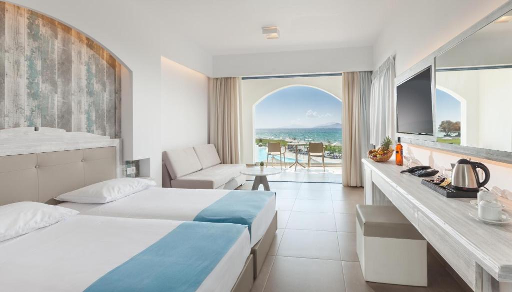 Aeolos Beach Hotel is located in the Lambi area close to the seashore (approx. 150 m). The distance to Kos harbor and the town center is about 4 km, and to Kos International Airport about 26 km.