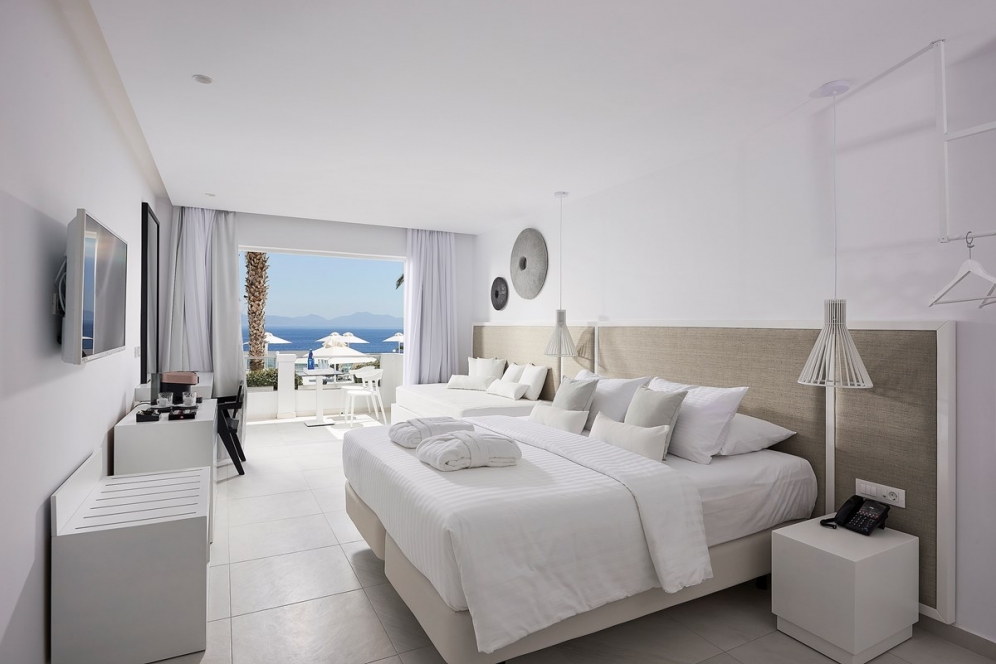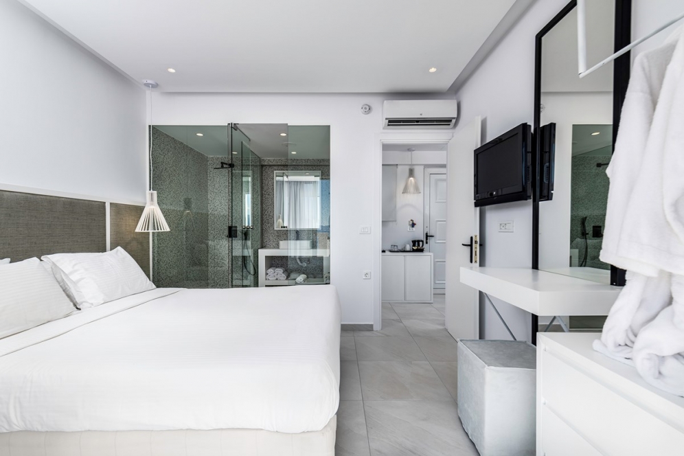 Moderneissa huoneissa on ilmastointi, LCD-TV, ilmainen tallelokero, puhelin, ilmainen Wi-Fi, kahvin- ja teenkeittovälineet, espressokone, minijääkaappi, allas – ja rantapyyhe, kylpytakit ja tohvelit ja kylpyhuone hiustenkuivaajalla.