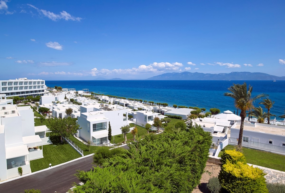 Moderni ja valkoisesti sisustettu viiden tähden rantahotelli, josta on upeat näkymät Egeanmerelle. Hotelli sijaitsee kristallinkirkkaista vesistään tunnetun Agios Fokasin rannalla. Hotellista on Kosin kaupunkiin noin 7 km. Therman kuumat lähteet, noin 3,5 km:n päässä, ovat ihastuttava kohde vierailla ja nauttia niiden parantavista vaikutuksista. Upeiden puutarhojen ympäröimä laaja lomakeskus koostuu päärakennuksesta, Club-sviittejä sisältävästä lisärakennuksesta sekä viidestä bungalow-korttelista yksityisen rannan tuntumassa. Dimitra Beach Resort on ihanteellinen pariskunnille ja perheille. Hotellissa on useita ravintoloita, baareja, uima-altaita, lastenaltaita, lasten leikkialue, aurinkotuolit ja -varjot rannalla ja uima-altailla (maksutta) minimarket, ATM, ulkokylpylä (lisämaksusta hierontaa), pyörän- ja autonvuokraus, pysäköinti. Paikallisbussit pysähtyvät aivan hotellin pääoven edessä (20 m).