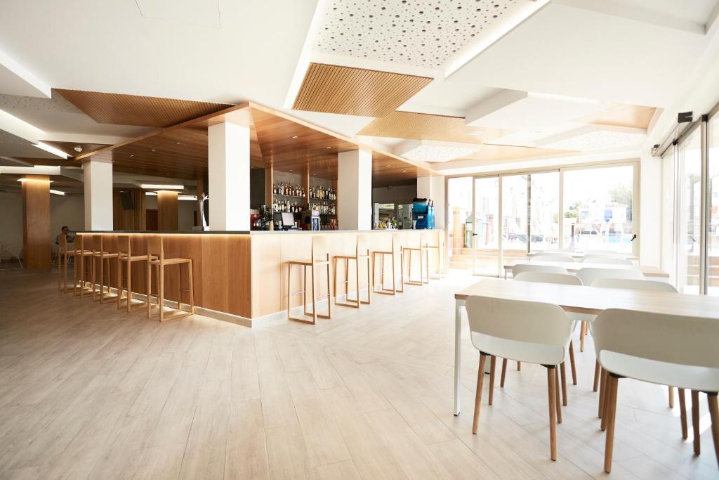 Remontoitu hotelli San Antoniossa. Tämä hotelli aikuisille (+18) sijaitsee San Antonion sisäänkäynnillä, vain 200 m San Antonion lahdelta ja kolmen minuutin päässä kuuluisasta huvilasta. Nauti kaikista vapaa-ajan aktiviteeteista ja rentoudu lomasi aikana. Siellä on 4000 m² virkistysleikkialue. Hiljattain kunnostettujen tilojen joukossa on kaksi uima-allasta puutarhalla, tenniskenttä, solarium jne. Kaikissa kahden hengen huoneissa on oma terassi, jolta on näkymät uima-altaalle. Tämä on täydellinen paikka tutustua saareen. Vastaanotossa asiakkaat voivat nauttia nopeasta Internet-yhteydestä ja he voivat myös pyytää Internet-yhteyttä huoneisiin (pyynnöstä). Puolihoidolla asiakkaille on tarjolla non-stop brunssi klo 8-14. Nauti upeasta ja täydellisestä aamiaisesta ja lounaasta. Myös kuumat juomat ja vesi sisältyvät hintaan. Virvoitusjuomat, olut ja viini klo 12 jälkeen.