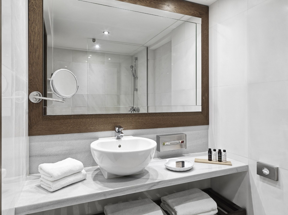 Hotelissa on upea allasalue, oma ranta aurinkopeteineen sekä kuntosali ja spa jossa sisäsuima-allas.