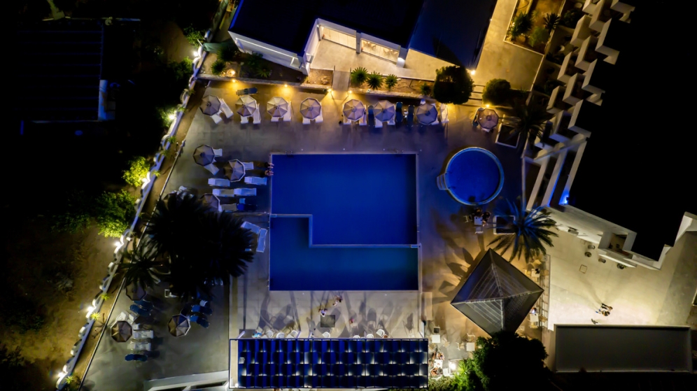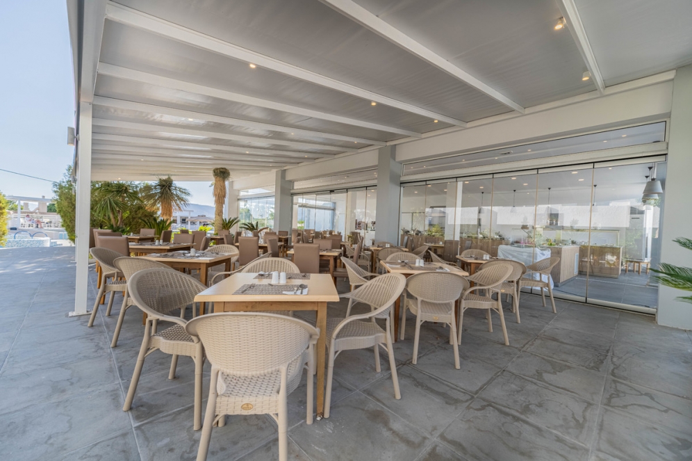 Hotelilla on "Dionysos" pääravintola sekä allasaluetta palveleva BBQ & Pizza ravintola. Hotelilla on myös viihtyisä Spa ja kuntosali.
