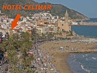 Detta hotell ligger i centrala Sitges, precis vid havet. Shoppingställen, restauranger och barer ligger alla inom gångavstånd från hotellet. Bekväma allmänna kommunikationer och närmaste nattklubb ligger inom 200 m från hotellet.||Bekvämt hotell att känna sig som hemma, Celimar Hotel centrerar detta i en av de kommersiella delarna men i Sitges. Det har 35 rum som är nödvändiga för att ändå kännas som i huset, förutom hall för möten, presentationer, kongresser, etc, service av reception 24h, hiss, bar, zon WI-FI och parkering (beroende på tillgänglighet)|| De inbjudande rummen är utrustade med eget badrum, hårtork, satellit-/kabel-TV, centralvärme och värdeskåp.||Det finns en golfbana 1 km från hotellet.||På morgnarna är gästerna välkomna att servera sig själva. från frukostbuffén.