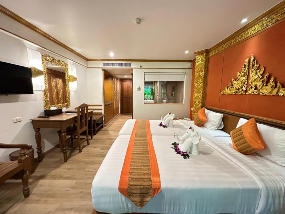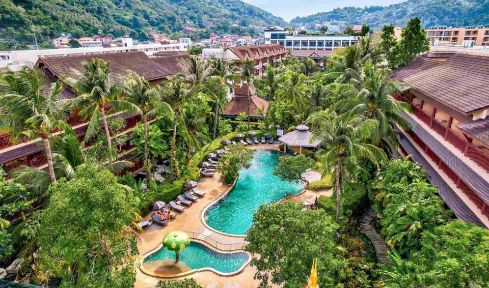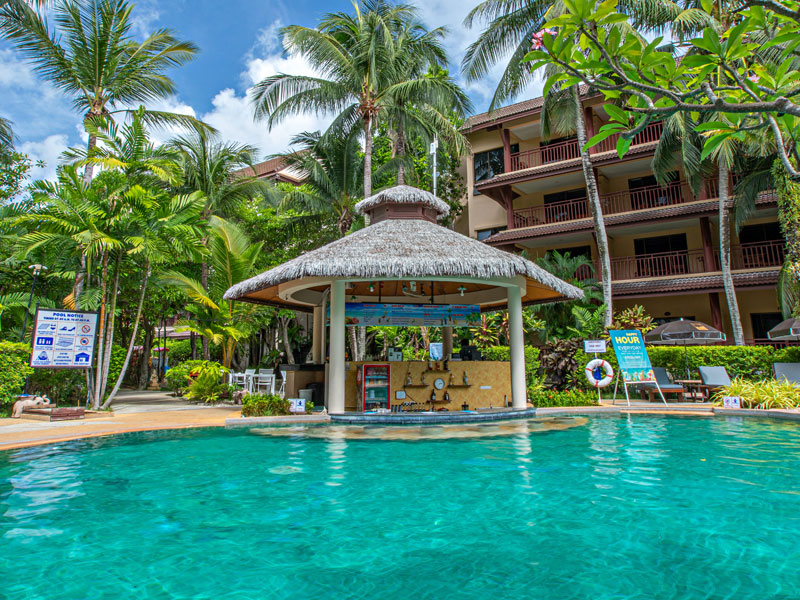 Kort om hotellet: Kata Palm Beach fascinerar med sin frodiga och vackra trädgård som omger hotellet och poolområdena. Hotellet har två fina poolområden, en lång flodliknande pool samt två barnpooler. Inredningen är i traditionell thailändsk stil. Här finns en restaurang och flera barer, bland annat en poolbar och en snackbar.