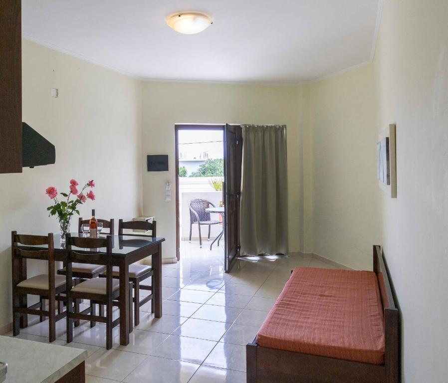 Läge: Från hotellet är det cirka 400 meter nerför backen till huvudvägen, där flygplatstransfern stannar. I närheten finns restauranger, minimarknader och apotek. Stranden i Kalamaki ligger några hundra meter bort. Busshållplatsen till Chania centrum ligger cirka 100 meter bort.